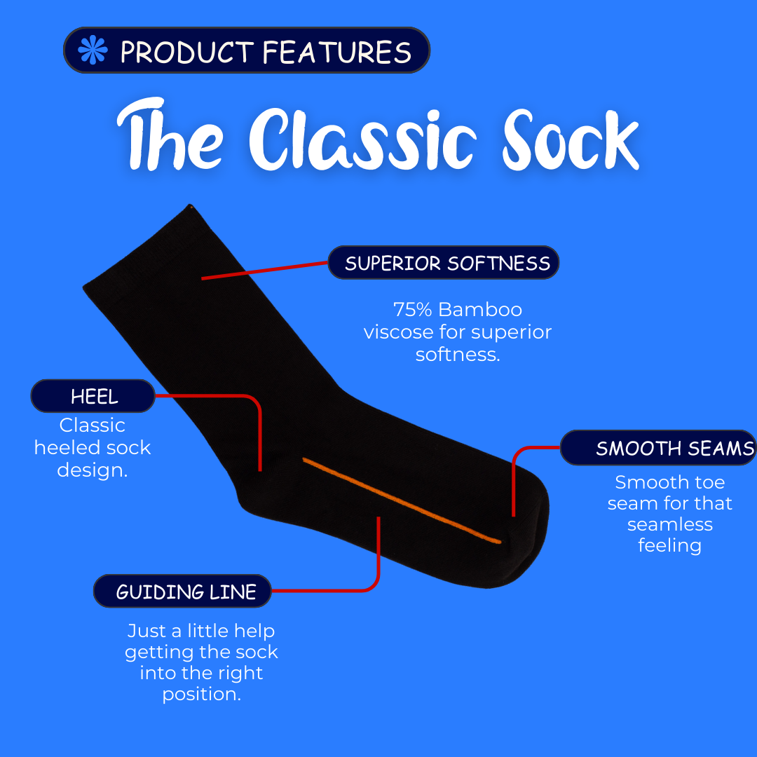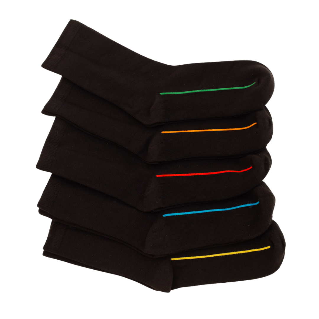 Seamless Feel Classic Socks with Guiding Line Black (Pack of 5)